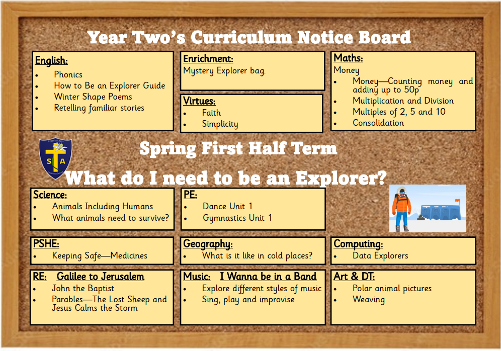 This half term we are looking at What we need to be an Arctic Explorer? We have had an exciting start to the term with messages and deliveries from a mysterious explorer. Our Maths focus is money and will be moving on to multiplication and division facts. Please continue to practice quick recall of times tables facts so your child is secure in their knowledge, particularly using the 2s, 5s and 10 times tables. You can do this using Times Tables Rock Stars at home.